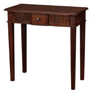 The single drawer, adorned with a brass knob, provides discreet storage while adding a touch of antique allure. With its graceful proportions and rich mahogany finish, this hall table effortlessly complements both traditional and contemporary interiors. Perfect for displaying your cherished décor or serving as an elegant entryway piece, the Milly Carved Hall Table brings a sense of romance and refinement into your home. Its timeless design ensures it remains a beloved feature for years to come, embodying the essence of fine living.