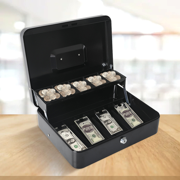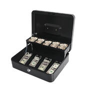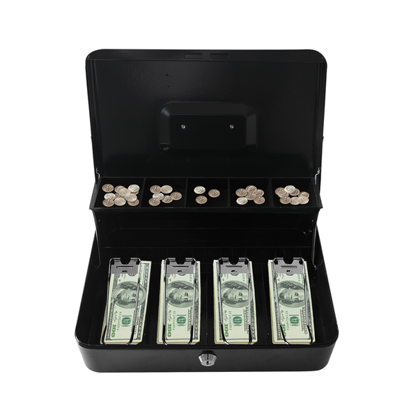 Our Cash Box is the best idea to keep banknote and coin organised. Sturdy construction featuring an automatically raise cantilever coin tray. 5 Coin slots and 4 stainless steel banknote clamps to keep it separately. 180 degree rotated recessed handle and lightweight for easy portability. Moreover, it is a great tool to teach younger people the valuable of making each penny countable.