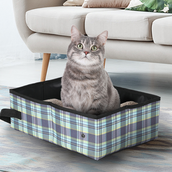 Cat Litter Box Foldable Large Kitty Toilet Plaid