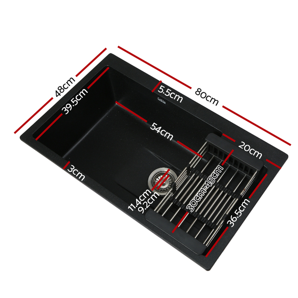 Kitchen Sink 80X48CM Granite Stone Kitchen Sinks in Black
