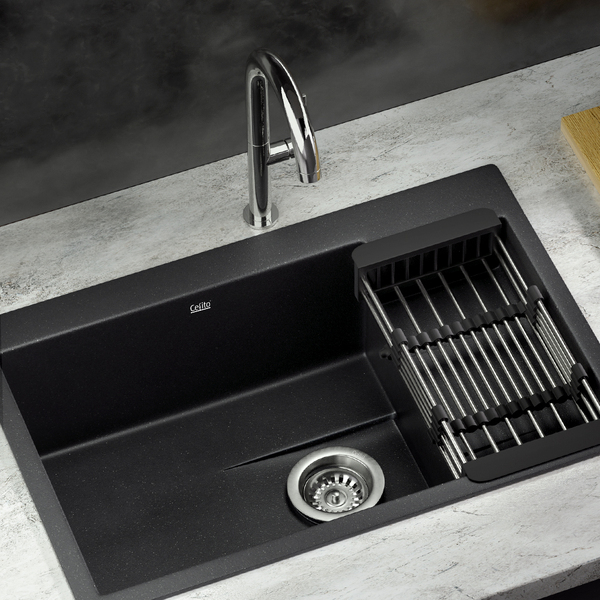 Your beautiful home certainly deserves the best of quality fittings and appliances. More so for your kitchen where meals should be prepared with safe, hygienic and food-grade equipment. That is why our Cefito Stone Sink is perfectly suited for your fine kitchen. Made of premium-quality black granite stone composite (80% granite), our 9mm thick stone sink with a silky textured surface not only look fabulous, but is also extremely durable and longlasting. Every bit of the sink is non-toxic, lead-free and highly resistant to heat, scratches, stains and dirt. Oil will not adhere to it and neither does it fade over consistent or heavy-duty use. The quality finish along with the R15 rounded corners mean the stone sink is completely easy to clean and maintain. Suitable for drop-in, flush or under mount installation, our stone sink also includes a 304 stainless steel corrosion-resistant waste strainer. With its contemporary finish, our stone sink is a definite stand-out in your esteemed kitchen.