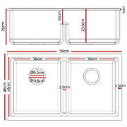 Stone Kitchen Sink 790X460MM Granite Under/Topmount Basin Double Bowl White