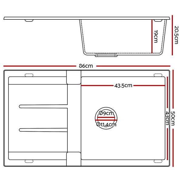 Cefito Stone Kitchen Sink 855X500MM Granite Under/Topmount Basin Bowl Laundry White