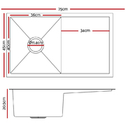 Cefito 75cm x 45cm Stainless Steel Kitchen Sink Under/Top/Flush Mount Silver