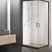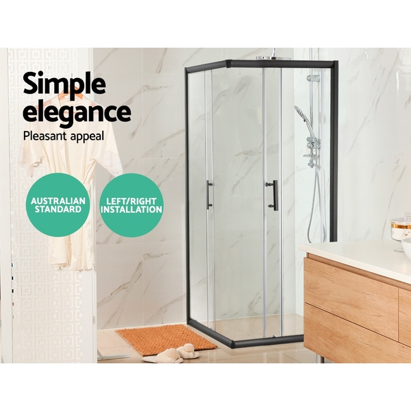 Cefito Shower Screen Square Bathroom Screens Glass Sliding Door Black 900x900mm