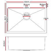 60cm x 45cm Stainless Steel Kitchen Sink Flush/Drop-in Mount Silver