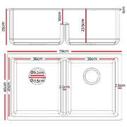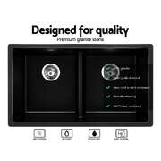 Stone Kitchen Sink 790X460MM Granite Under/Topmount Basin Double Bowl Black