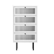 The four drawers with tempered-glass doors provide cavernous storage space while the powder-coated metal handles on each drawer ensure hassle-free effortless opening and closing. Plus, you'll be assisted by the smooth powder-coated metal runners that make using this chest of drawers a breeze and never a chore, especially when laden with a generous amount of storage items. More display space is also found at the top of the chest of drawers that allows this versatile item to be used in a variety of decor ideas throughout your home. Bedroom, study, living room or hallway. Get one. Get two. Get more. A chest of drawers this good deserves more than one to grace your home.