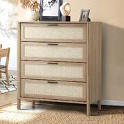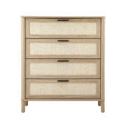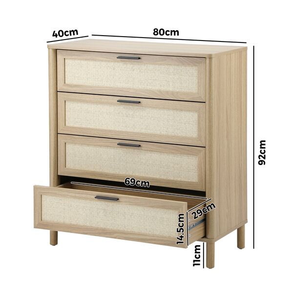 This eye-catching piece from is ready to grace your esteemed home with exquisite finesse. Displaying a very practical and equally stylish design, our chest of drawers features rattanesque front drawer panels matched with natural wood hues to create interesting aesthetics with depth and character. Thoughtful touches that render a unique presence.