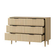 Time to refresh your existing chest of drawers with this eye-catching piece from. With a practical and contemporary design, our chest of drawers features a neutral finish with stylish stripe textures on each drawer front to create interesting aesthetic embellishments. Thoughtful touches that render a unique presence.