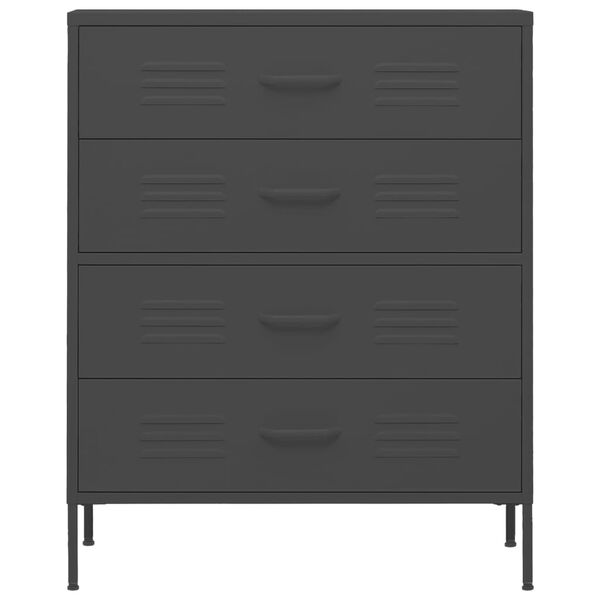 This chest of drawers with practical design is a real eye-catcher for your home decor. This side cabinet, featuring a steel construction, is sturdy and durable. There are levellers on the bottom to adjust the height according to your needs. The drawers can be fully extended and are ideal for keeping all kinds of smaller items organised and within reach. Drawers with ballbearing runners ensure smooth opening and closing, even under increased load.
