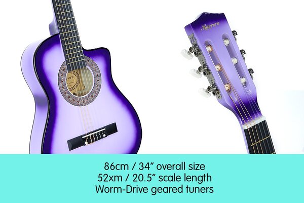 This Karrera hand crafted childrens guitar is the first available children's cutaway design in Australia. Just like the full size instruments, the cutaway design allows easier access to the frets.