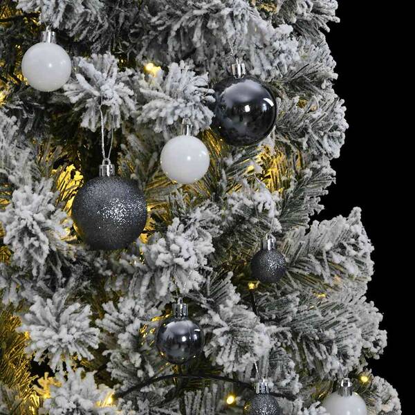 Comes with beautiful holiday decorations, this artificial hinged Christmas tree with LEDs will be eye-catching in the evening and create just the right atmosphere for this Christmas. Hinged construction: The Christmas tree has a hinged construction, so the branches will automatically fold down at the right angle. This will make it much easier to put up the tree in the perfect shape and will save you time as well.8 lighting modes: The LED string light has 8 different lighting effects (combination, in wave, sequential, slow glow, chasing/running water, slow fade, twinkle/flash, and steady on). You can switch the lighting modes by pressing the button on the USB to create different holiday atmospheres.Beautiful decoration: The modern Christmas tree is decorated with artificial white snow, creating an attractive look. These shiny Christmas balls are available in three different sizes, which bring more possibilities for your DIY decoration.Sturdy stand: The metal stand provides your Xmas tree with optimal sturdiness and stability.Economical choice: You can reuse the holiday ornament every year, which is a cost-effective option compared to getting a real tree. Good to know:We recommend setting aside 45-60 minutes after assembly to properly shape the tree by peeling back the branches and pulling the tips apart to give the branches a more full-bodied look.The product has a USB connector that requires a certified 5V USB power source (not included).Please ensure that the USB connection is plugged in a dry environment.