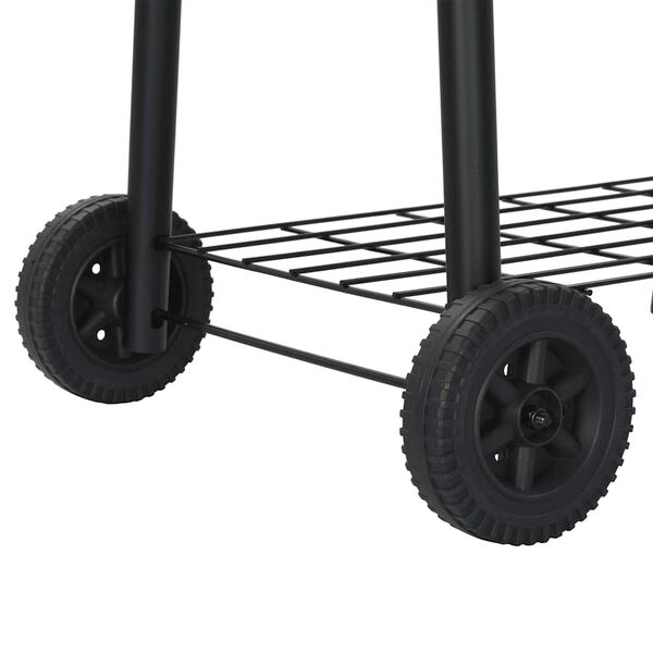 This smoker, consisting of generous cooking chamber and robust side firebox, allows you to conveniently grill, smoke and flavour your food. The perfectly sealed, thick metal body of the smoker ensures excellent retention and distribution of heat. The air outlets will help you adjust the air flow while the smoke stack damper controls the amount of smoke. Thanks to the integrated thermometer, you can observe and monitor the temperature. The smoker also contains a shelf in front and a storage shelf below where you can place spices, ingredients, utensils and other barbecue essentials. Equipped with 2 wheels, it can be easily moved around for outdoor parties, picnics and gatherings. Do not use the barbecue in a confined and/or habitable space e.g. houses, tents, caravans, motor homes, boats. Danger of carbon monoxide poisoning fatality.