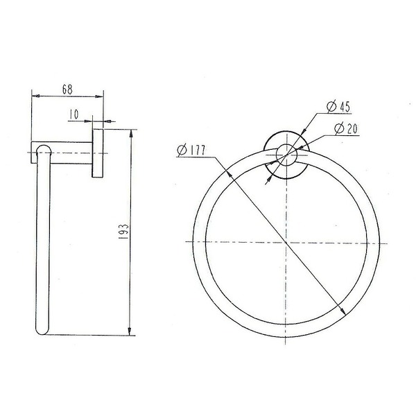 The dimensions of the towel ring are: 193 x 68 mm (H x D). Ring diameter is 177mm. Installation is straightforward, and all hardware and instructions are included with your purchase.