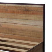 The item features a headboard which has attractive oak finish and black metal border line. This will provide support for comfortable leaning back against the headboard.