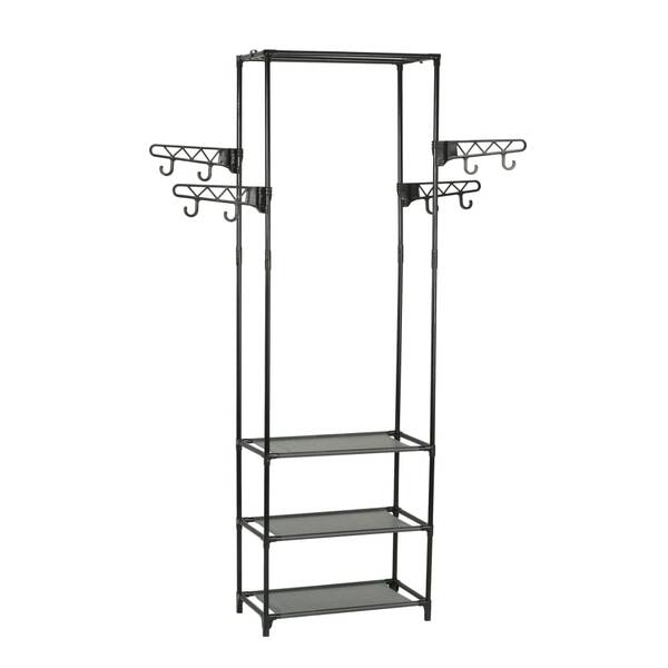 This minimalistic clothes rack is an ideal storage solution for the bedroom or bathroom. It has a tubular, powder-coated steel frame, which is lightweight yet sturdy, making the clothes rack easy to move around and quite durable. It has three generous shelves that are made of a non-woven fabric, and designed to keep your bags, shoes or small items organised and within reach. It also has four side arms with hooks for additional storage space for your longer clothing like coats and jackets. Assembly is easy.