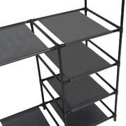 This minimalistic clothes rack is an ideal storage solution for the bedroom or bathroom. It has a tubular, powder-coated steel frame, which is lightweight yet sturdy, making the clothes rack easy to move around and quite durable. It has four shelves that are made of a non-woven fabric, and designed to keep your bags, shoes or small items organised and within reach. It also has four side arms with hooks for additional storage space for your longer clothing like coats and jackets. Assembly is easy.