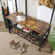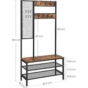 Coat Rack Stand Industrial Style With Grid Wall And Shoe Storage 185 Cm Tall Rus