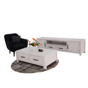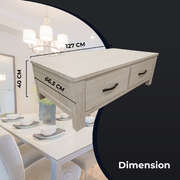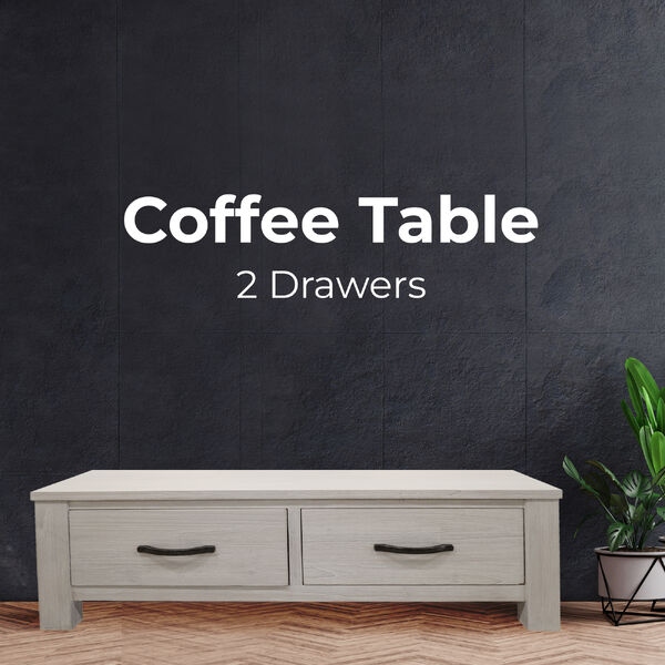 Coffee Table 127Cm 2 Drawer Solid Mt Ash Timber Wood - White