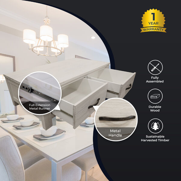 A shapely sculpted coffee table adds a layer of beauty to any interior. This highly functional and stylish coffee table, designed in coastal style, with 2 drawers will complement any existing furniture and decor in your home. The impressive furniture piece is made of mountain ash wood harvested in a sustainable way. The wood is known for attractive looks, great strength, shock-resistance, durability, and also easy maintenance. The fully assembled coffee table comes with 2 storage drawers to enhance the storage capacity of your living area. The drawers are embellished with full metal extension runners and gleaming metal handles with an antiqued finish. The coffee table comes with a one-year warranty.