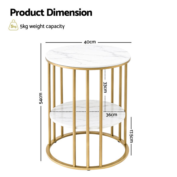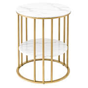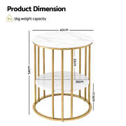 Coffee Table 2-Tier Round Marble Effect White&Gold