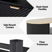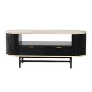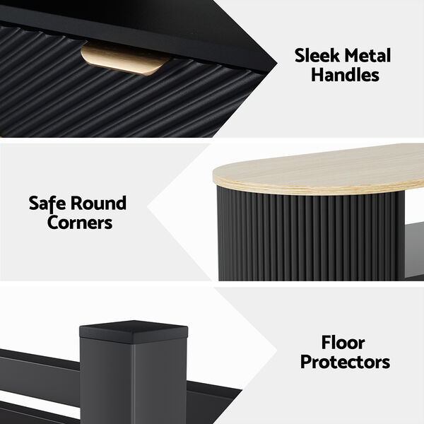 The Coffee Table combines modern design with practicality. Its spacious 110cm tabletop is perfect for holding drinks, books, or decorative items, while the two large drawers and open shelf provide ample storage for everyday essentials. The elegant fluted design and sleek metal handles add a touch of sophistication to any room. Ideal for living rooms, offices, or lounges, this coffee table is durable, easy to assemble, and easy to clean—offering both functionality and style in one piece.