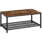 Coffee Table Living Room Table With Dense Mesh Shelf Large Storage Rustic Brown