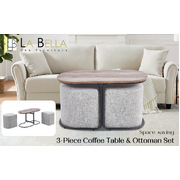 Industrial Wood Coffee Table & Ottoman Set - Cream Grey (3 Piece)
