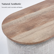 3 Piece Set Coffee Table & Ottoman Wood Side End Table Industrial Rustic - Cream Grey
