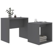 Our 2-piece coffee table set is the perfect alternative for small flats or any area with limited space. Its contemporary design makes this nesting table set a chic addition to your living room, bedroom or office. This side table set is made of quality engineered wood, making it sturdy and stable. The nesting tables are multifunctional. They can be used in the living room as a convenient surface to rest your drinks or any other necessities you need close at hand. The small coffee table, with its shelving-design, can offer you extra space for storing magazines, DVDs or other items. This set is space-saving as the smaller one can be hidden underneath the big coffee table when not in use. You can also bring one of them into your bedroom for use as a unique nightstand! The coffee table set is easy to clean with a damp cloth. This nesting table set is also easy to assemble.
