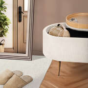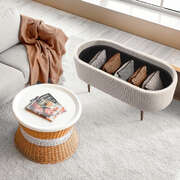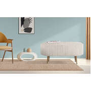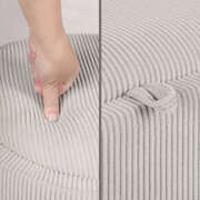 With soft ribbed corduroy fabric and plush foam cushioning, it invites you to sit back and unwind. Need extra table space? Just flip the lid to reveal a sleek tray surface, perfect for drinks, books. Inside, there's roomy storage for blankets, toys, or daily clutter.