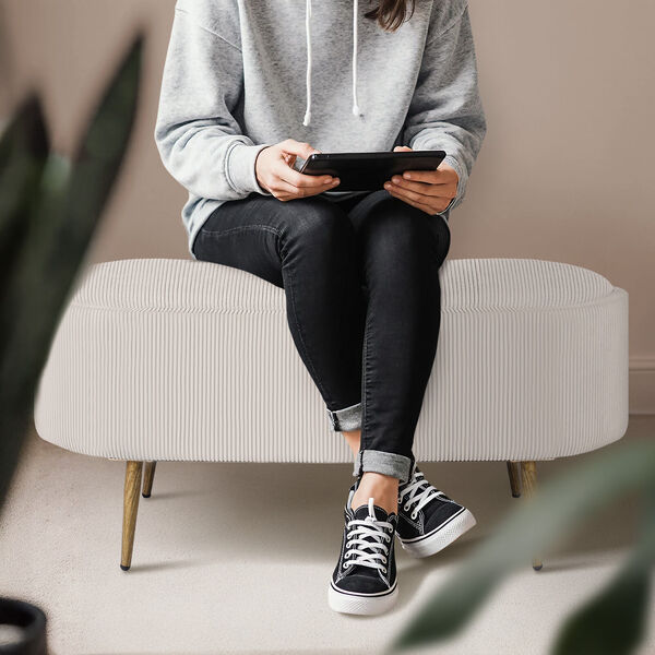 Coffee Table Storage Ottoman - Ribbed Corduroy Blanket Box Bench ESME - Cream