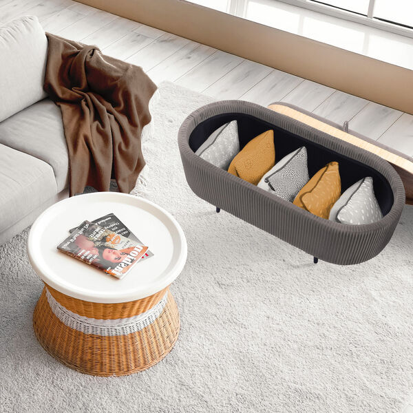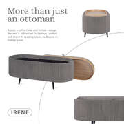 Coffee Table Storage Ottoman - Velvet Padded Blanket Box Bench IRENE - Grey