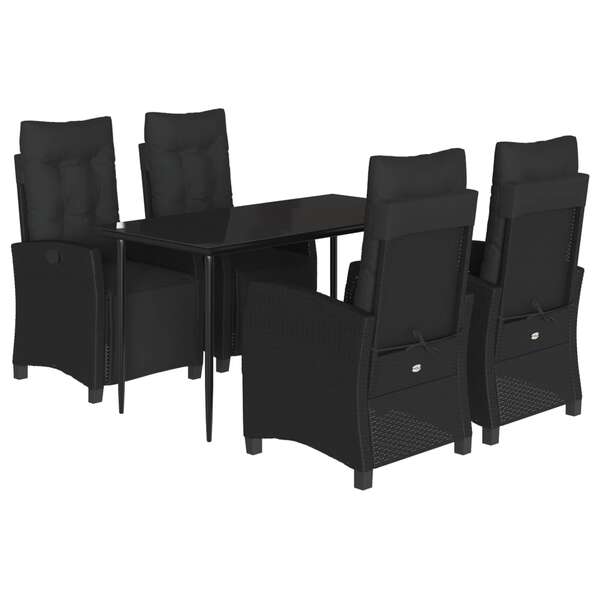 Comfort:5 Piece Garden Dining Set with Cushions Black Poly Rattan
