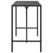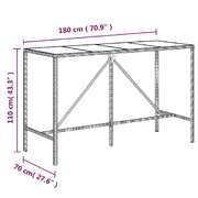 This trendy bar table with glass top, combining both style and function, is surely meant to be the centrepiece of your garden, patio, and any other living space. Weather-resistant material: PE rattan, also known as poly rattan, is weather resistant and easy to clean. It remains beautiful on the outside for a long period of time. It offers great quality, convenience and an aesthetic look.Tempered glass tabletop: The tabletop is made of tempered glass, making it easy to clean. Additionally, it offers excellent support for holding your drinks, snacks, and your favourite decorations.Sturdy frame: The powder-coated steel frame makes the bistro table sturdy and stable for daily outdoor use.Wide applications: The pub table, with its remarkable design, creates a pleasant overall appearance that integrates effortlessly into any environment. Good to know:To make assembly as easy as possible, each product is delivered with a manual. Note:To make sure your outdoor furniture stays beautiful, we recommend protecting it with a waterproof cover.
