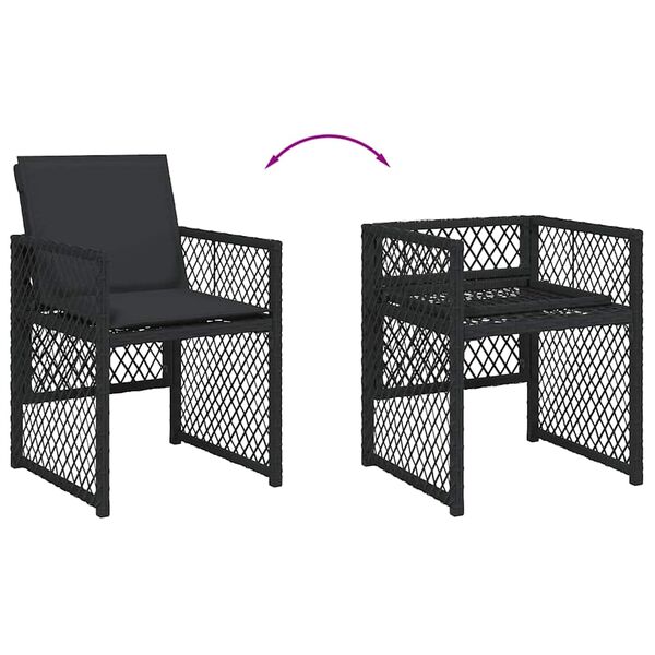 Relax and enjoy the outdoors in these comfortable garden chairs! Durable material: PE rattan, also known as poly rattan, is a strong, low-maintenance synthetic material that looks like natural rattan. It's lightweight, easy to clean, and commonly used for outdoor furniture due to its durability and weather-resistant properties.Comfortable seat experience: This outdoor furniture, complete with thickly padded cushions, offers a comfortable seating experience.Flap backrest: These chairs have a flap backrest that can be folded down for compact storage.Removable and washable cover: These cushions feature removable covers for easy washing and maintenance. The chair cushion covers have a flap at the back for easy attachment to the chairs.Robust and stable frame: The powder-coated steel frame ensures the garden furniture is strong and stable for daily outdoor use. Good to know:To make sure your outdoor furniture stays beautiful, we recommend protecting it with a waterproof cover.