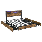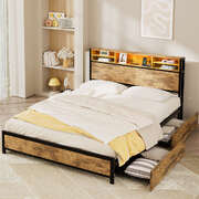 Upgrade your sleep space with this premium bed frame designed for both comfort and convenience. Featuring an integrated LED light strip with adjustable brightness and a large power outlet on the headboard, you can effortlessly create the perfect ambiance while keeping your devices charged. The bed's side boasts four spacious drawers, ideal for storing off-season clothing and everyday essentials, maximising your bedroom's storage without sacrificing style.