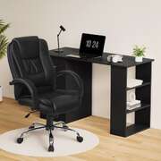 Computer Desk 120cm Executive Office Chair Set PU Leather High Back Black
