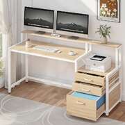 Computer Desk Home Office Study Table Desks w/Drawers Open Shelf Oak 160CM