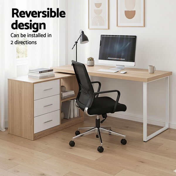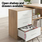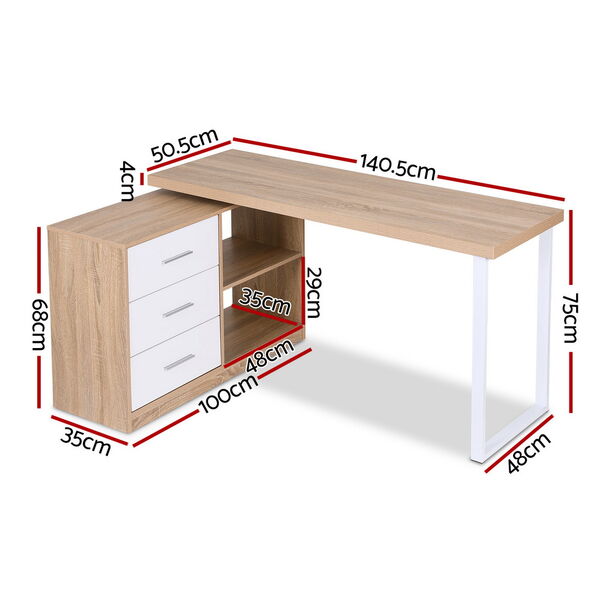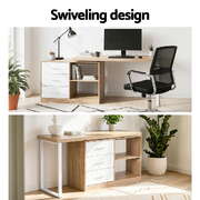 Computer Desk Swivelling L shape Home Office Storage Cabinet Oak