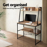 Drawing its inspiration from industrial design cues, our Artiss Hugo Computer Desk is a work of meticulous craftsmanship in form and function. It is designed to enhance your work efficiency and yet add a stylish touch to your home or office décor. Made from quality particle board with beautiful natural woodgrain paper finish, the desk is durable and easy to maintain for longlasting use. The black power-coated metal frame also ensures reliable load-carrying stability for robust use. The desk offers plenty of space for work and storage from top to bottom. The partitioned shelves up top and the large under-desk shelf allow you store all your work essentials, files, books, binders and stationery in their designated spots, while the wide tabletop easily accommodates your laptop and other working peripherals. Better still, a hole at the back of the desk for cable management helps you to keep the desk organised and tidy at all times. All in all, the Artiss Hugo Computer Desk is your inspired workspace for years to come.