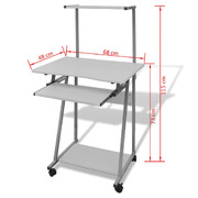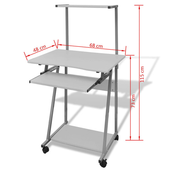 This compact computer desk provides enough space for you. Ideal to be used as a work-station, it will surely be an eye catcher in your room or in your office. With the LCD monitor placed on the desk, It has a pull-out keyboard tray right beneath the desk. The bottom shelf helps to hold a CPU tower or printer, and the shelf on the top offers additional organization and storage space. The installed castors are designed for convenient mobility. Constructed of stable particle board and powder-coated steel frame, this computer desk will surely bring you years of service.