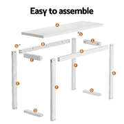 The Console Table combines minimalist design with practical features, making it a standout piece for homes, cafes, and studios. Its wood grain surface and ski-leg structure provide durability and elegance, while the spacious underspace offers functional storage. This versatile console table is easy to clean, easy to assemble, and includes an anti-toppling device, ensuring safety and stability. Perfect for entryways, hallways, or living rooms, it suits a wide range of decor styles.