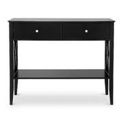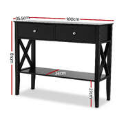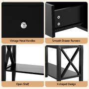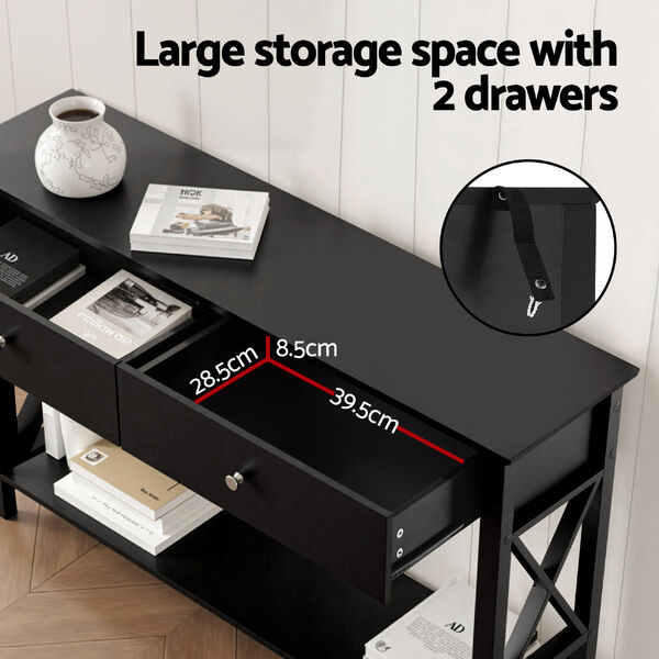 Bring stylish charm and modern function to any space with the Console Table. Featuring 2 spacious drawers with vintage metal handles, smooth runners, and anti-toppling device, this console table offers ample storage. Its 2-tier open shelf design suits entryways, living rooms, cafés, or salons. Easy to clean and maintain, it's perfect for everyday use.