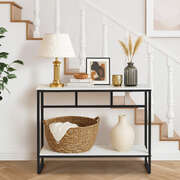 Crafted with high-quality materials with close attention to details, our console table is built to last. The sturdy powder-coated metal frame provides a solid structure for the console table, while the smooth and marble-like twin tabletops offer a sleek and sophisticated surface for displaying decorative items or everyday essentials. The clean lines and sleek design will complement any decor style with ease. Better still, its presence need not be at just the hallway but in every living space or room that warrants your creativity and imagination.