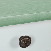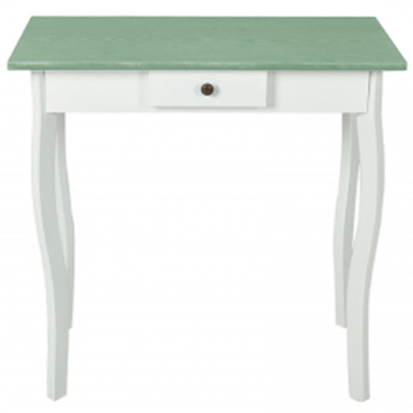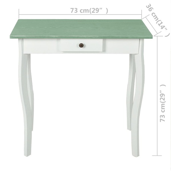 This stylish cottage style table painted in white and greyish green will be an absolute highlight in your room.The table features excellent workmanship combined with great functionality. The elegant curved legs ornament your living room or bedroom. In addition, the drawer underneath provides ample space for your belongings. The table is made of quality materials that will guarantee years of good service. Note:Since this furniture is hand-crafted, made of wood and painted white,it may come with a small defect