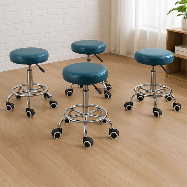 Enhance your workspace or home with the Swivel Bar Stools in a striking teal finish. Designed for both professional and home use, this set of two offers a perfect balance of contemporary style and ergonomic comfort. Whether you're working in a salon using a comfortable salon stool, setting up a barber station, or adding a modern touch to your home bar or office with stylish bar stools, these stools provide the ideal seating solution that rivals traditional kitchen stools or compact round bar stool designs.