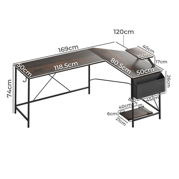 The L-shaped design of this desk provides ample workspace for all your professional tasks, whether you're working on multiple projects simultaneously or collaborating with colleagues. The spacious layout allows for efficient use of space, maximizing productivity and creativity.