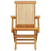 This wooden garden chair set consists of 3 pieces and is meant to be a great addition to your garden, terrace or patio. You can relax and chat with family and friends or enjoy the weather. Constructed from extremely durable teak hard wood, this piece of teak furniture has been seasoned, kiln dried and then fine sanded to give a very smooth appearance. Teak wood is known for its exceptional strength and weather resistance, making it far more suitable for garden furniture than any other kind of wood. Teak wood is the perfect choice if you want to purchase a long lasting piece of garden furniture. The sanded surface is easy to clean with a damp cloth. These outdoor chairs are also lightweight, making them completely flexible and easy to move around. The wooden chairs can be folded to save space when not in use.
